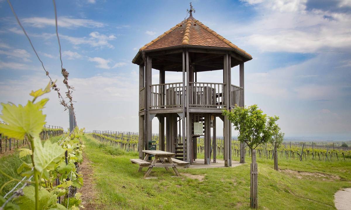 Am oberen Ende der Kellergasse befindet sich eine Parkmöglichkeit. Der Aufstieg zur Warte von hier aus erfolgt dann weiter durch die Weingärten leicht bergan.