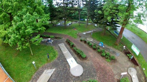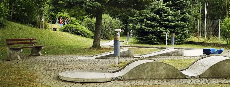 Direkt neben dem Anton-Rupp-Freizeitzentrum gelegen, lädt die Minigolfanlage mit 18 abwechslungsreichen Naturbahnen zu Spiel und Spaß in angenehm schattiger Umgebung ein. Die Anlage bietet Herausforderung und Vergnügen für Anfänger:innen ebenso wie für geübte Spieler:innen. Zahlreiche Sitzgelegenheiten machen sie auch zu einem gemütlichen Ort zum Verweilen. Schläger und Bälle sind vor Ort verfügbar, Hunde sind an der Leine oder mit Beißkorb willkommen – ideal für einen entspannten Ausflug für die ganze Familie.