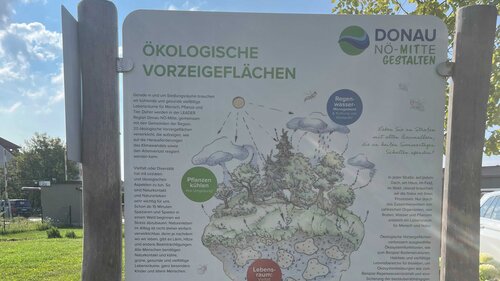 Die ökologische Vorzeigefläche inkl. großer Infotafel wurde durch die LEADER Region Donau NÖ-Mitte gefördert. Nähere Informationen zum Projekt finden Sie auf der Webseite der LEADER Region.