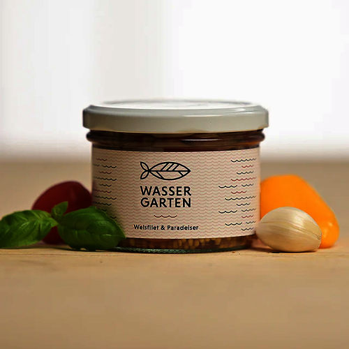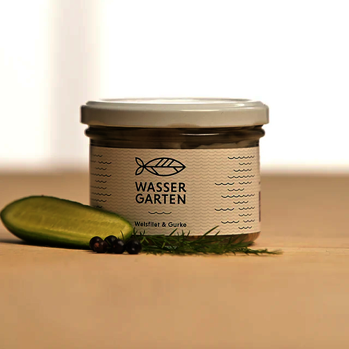 Wir haben daraus sogar eine eigene Produktlinie entworfen: den himmlischsten Teufelsroller aus diesen Gefilden, den einzig wahren Rollmops vom Raubwels, oder wie wir liebevoll sagen, den Glaserlfisch aus dem Wassergarten.