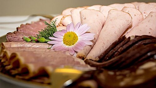 Geselchtes zum Kochen oder gekocht, Rohschinken, Bauernspeck, Schweinsbraten, Surbraten, Kümmelbraten, Pfefferkarree, Knoblauchgespicktes, Leberkäse, Pikantleberkäse, Käsleberkäse, Leberkäsbrat zum Selberbraten