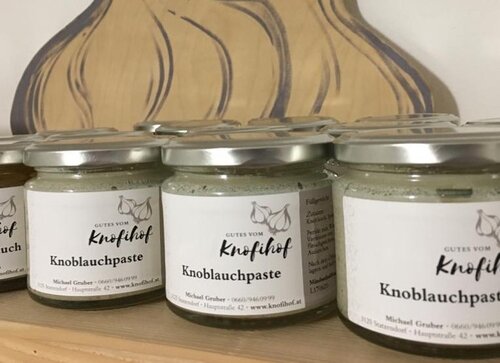 Wir veredeln unsere Rohprodukte als "würzigen Knoblauch" in Weinessig oder als "Knoblauchpaste" zum verfeinern von Gerichten. Die "eingelegten Zucchini" süßsauer schmecken lecker zur kalten Jause.
